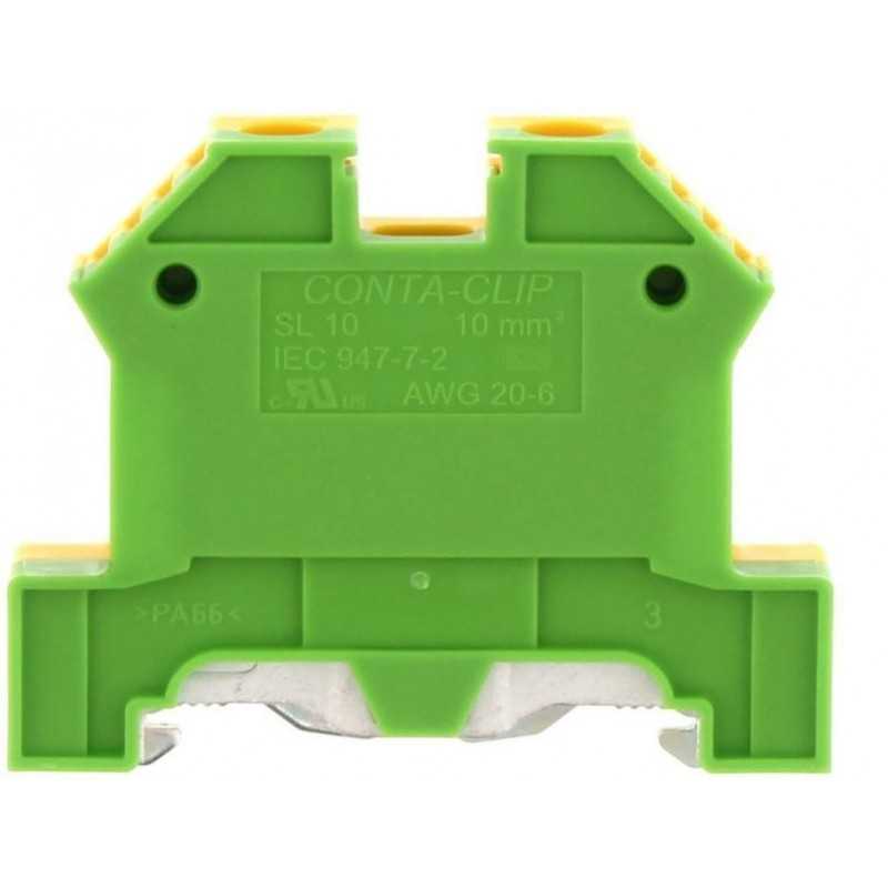 Borne tierra, Seccion de cable 10mm² (22-6 AWG), Modelo SL 10, Color amarilo/verde, Marca Contaclip