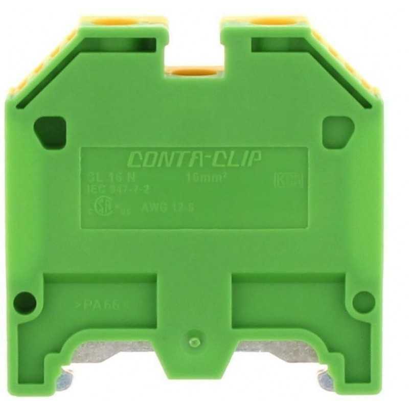 Borne tierra, Seccion de cable 16mm² (10-4 AWG), Modelo SL 16N, Color amarilo/verde, Marca Contaclip