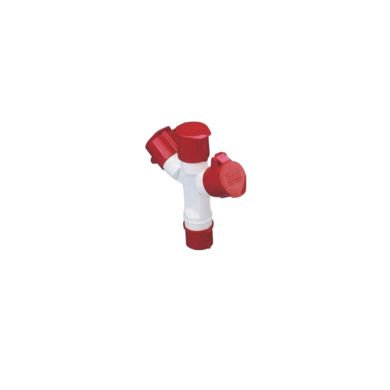 Enchufe industrial, Trifásico, múltiple, Corriente 16A, Voltaje 380V, de 3 polos mas Tierra, 3 Salidas, protección IP44 marca Fastelec