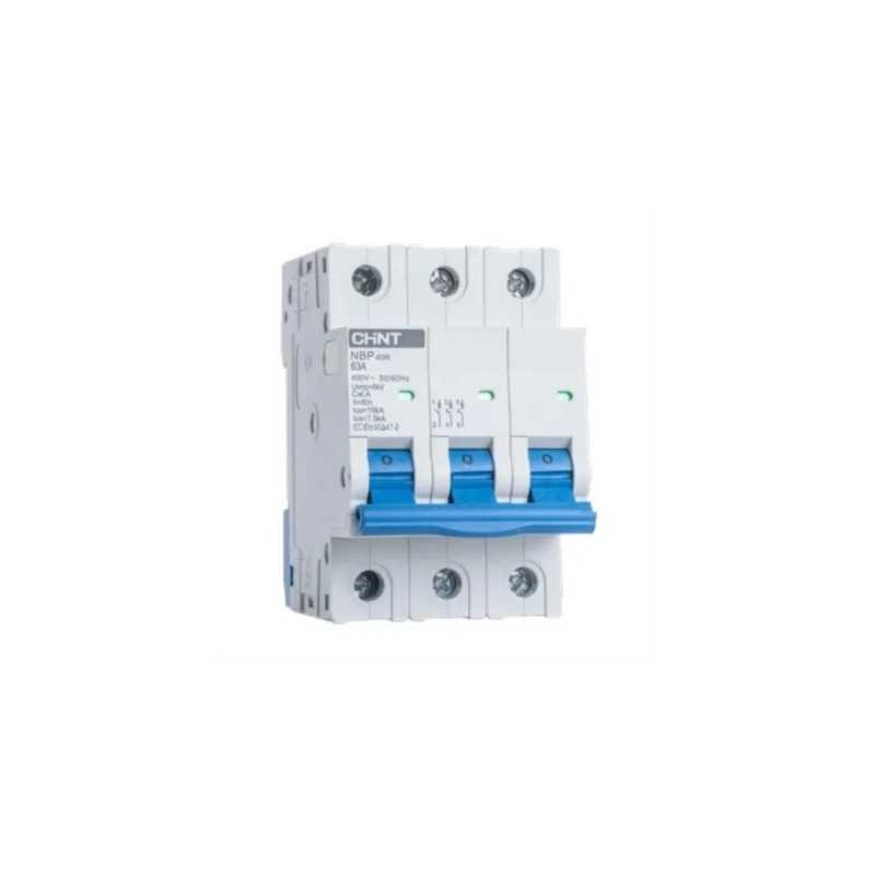 Interruptor MCB, 3 Polos, Corriente 20A, Curva C, Poder de corte 15kA, Modelo NBP-63R, Norma IEC60947-2, Marca CHINT