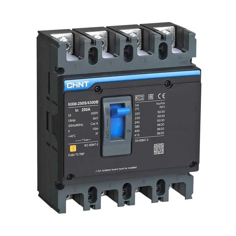 Interruptor MCCB, caja moldeada, modelo NXM-250H, 4 Polos, Corriente 200A, Fijo, TMF, Ruptura 50kA, 415V, marca CHINT
