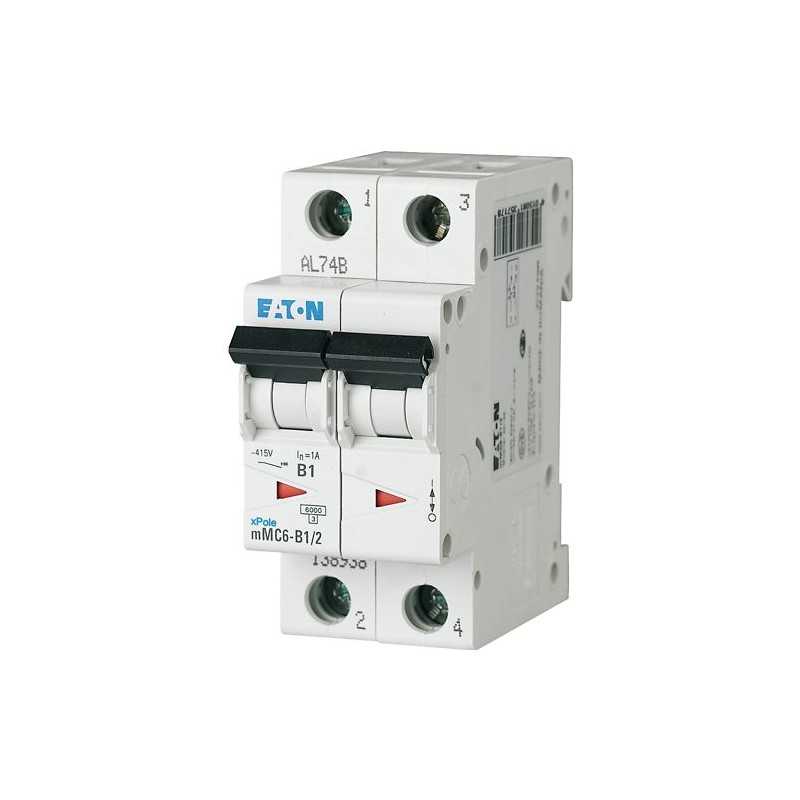 Interruptor automatico, MCB, Riel DIN, Corriente 4A, 2 Polos, Curva C, Ruptura 6kA, Tensión 400V, Modelo mMC6-C4/2, Marca EATON