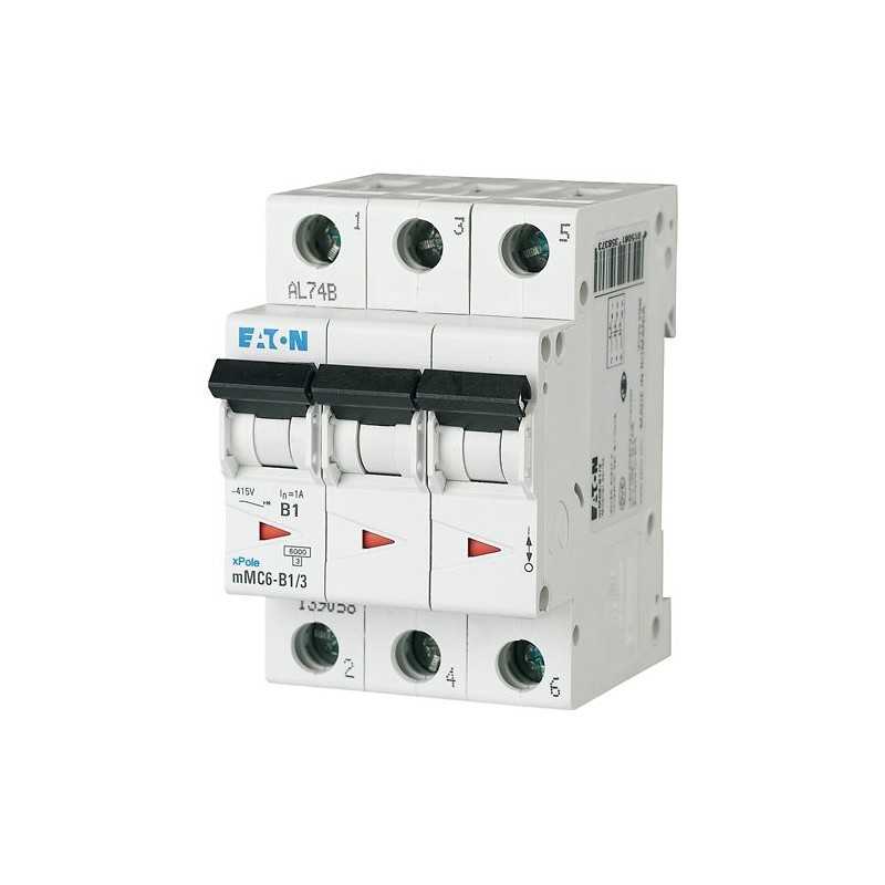 Interruptor automatico, MCB, Riel DIN, Corriente 2A, 3 Polos, Curva C, Ruptura 6kA, Tensión 400V, Modelo mMC6-C4/3, Marca EATON