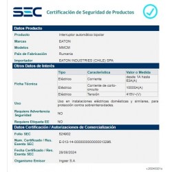 Interruptor automatico, MCB, Riel DIN, Corriente 3A, 2 Polos, Curva C, Ruptura 10kA, Tensión 400V, Modelo mMCM-C4/1, Marca EATON