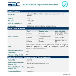 Interruptor RCBO, 1 Polo + Neutro, Corriente 16A, Curva C + Diferencial, Corriente residual 30mA, tipo AC, Modelo NXBLE-63, Marca CHINT