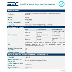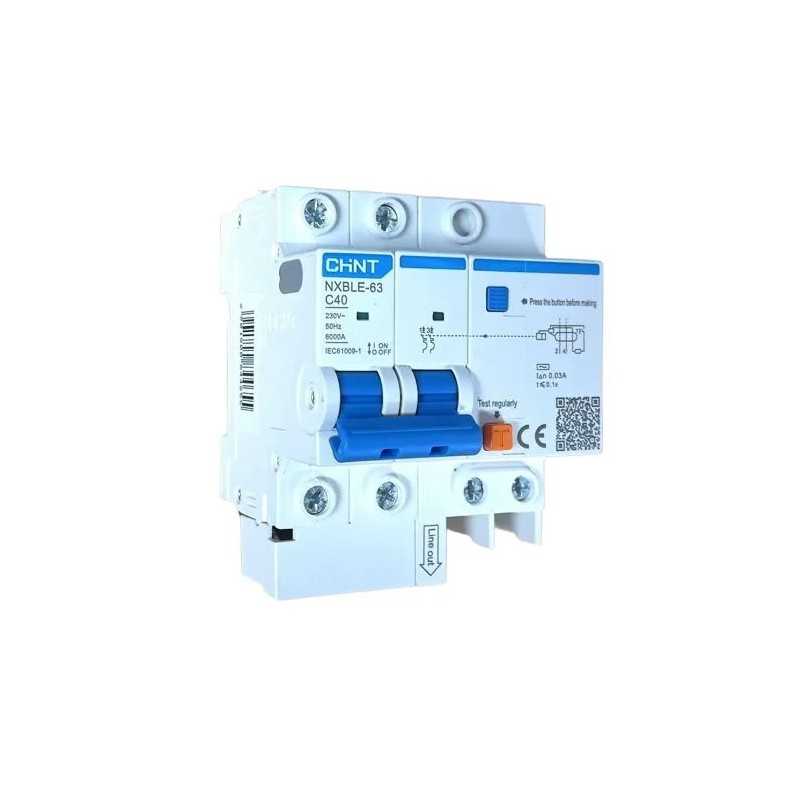 Interruptor RCBO, 2 Polos, Corriente 40A, Curva C + Diferencial, Corriente residual 30mA, tipo AC, Modelo NXBLE-63, Marca CHINT
