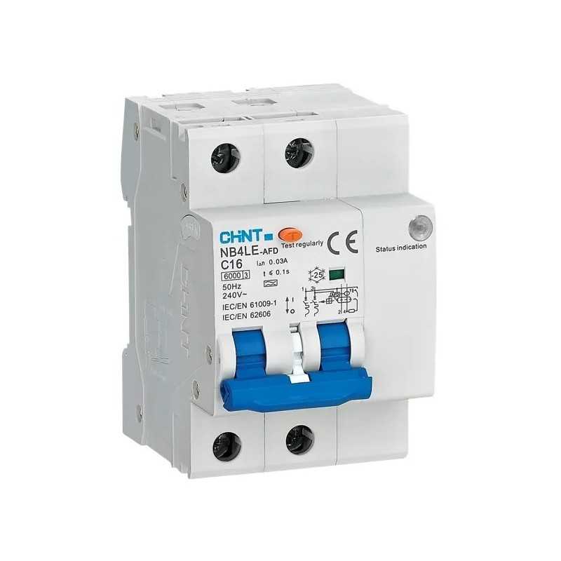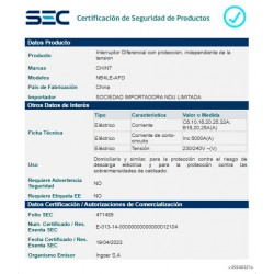 Interruptor Diferencial con Deteccion falla de arco, 2 Polos, Corriente 6A, Curva C, Corriente residual 30mA, Tipo A, marca CHINT