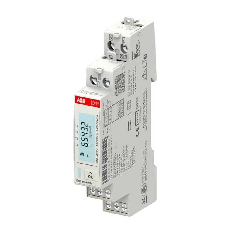 Remarcador monofasico, Modelo D11 15-M, Corriente 40A, Medicion Directa, MID, Comunicación Modbus RTU, Marca ABB