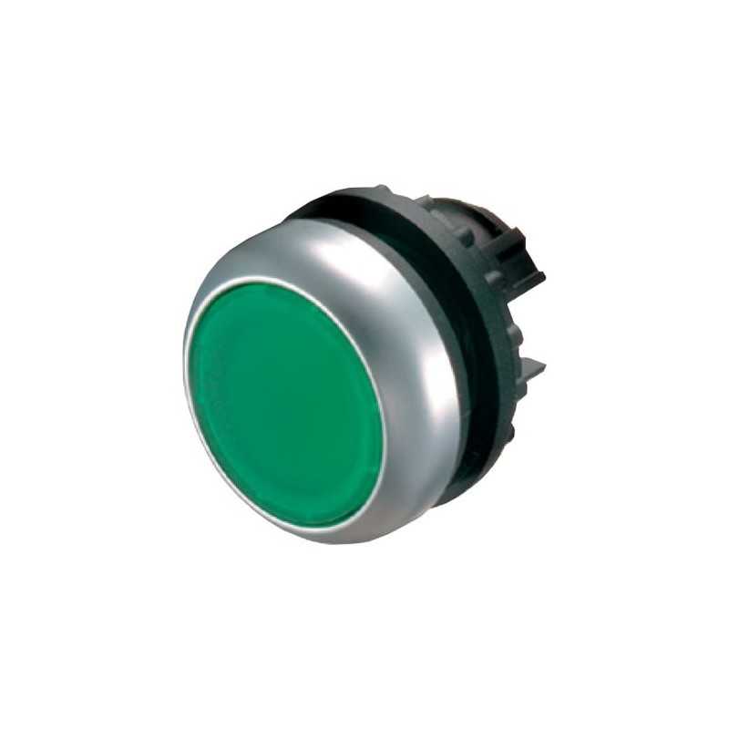 Cabezal, Pulsador Verde, Pulsador Rasante, Momentaneo, Perforación: 22mm, Color Verde, Modelo M22, Marca EATON