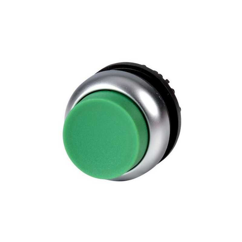 Cabezal, Pulsador Verde, Pulsador Saliente, Con Enclavamiento, Perforación: 22mm, Color Verde, Modelo M22, Marca EATON